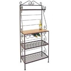 These black finished bakers racks make excellent store displays for gift, specialty, gourmet and department stores. They are a great accent piece in any room in the home. They are fully assembled and they are made of strong steel tubing. They feature two steel shelves, one wood shelf, and 5 wine bottle holders for extra wine storage. It is extremely strong and durable and will add elegance wherever it is placed. .
